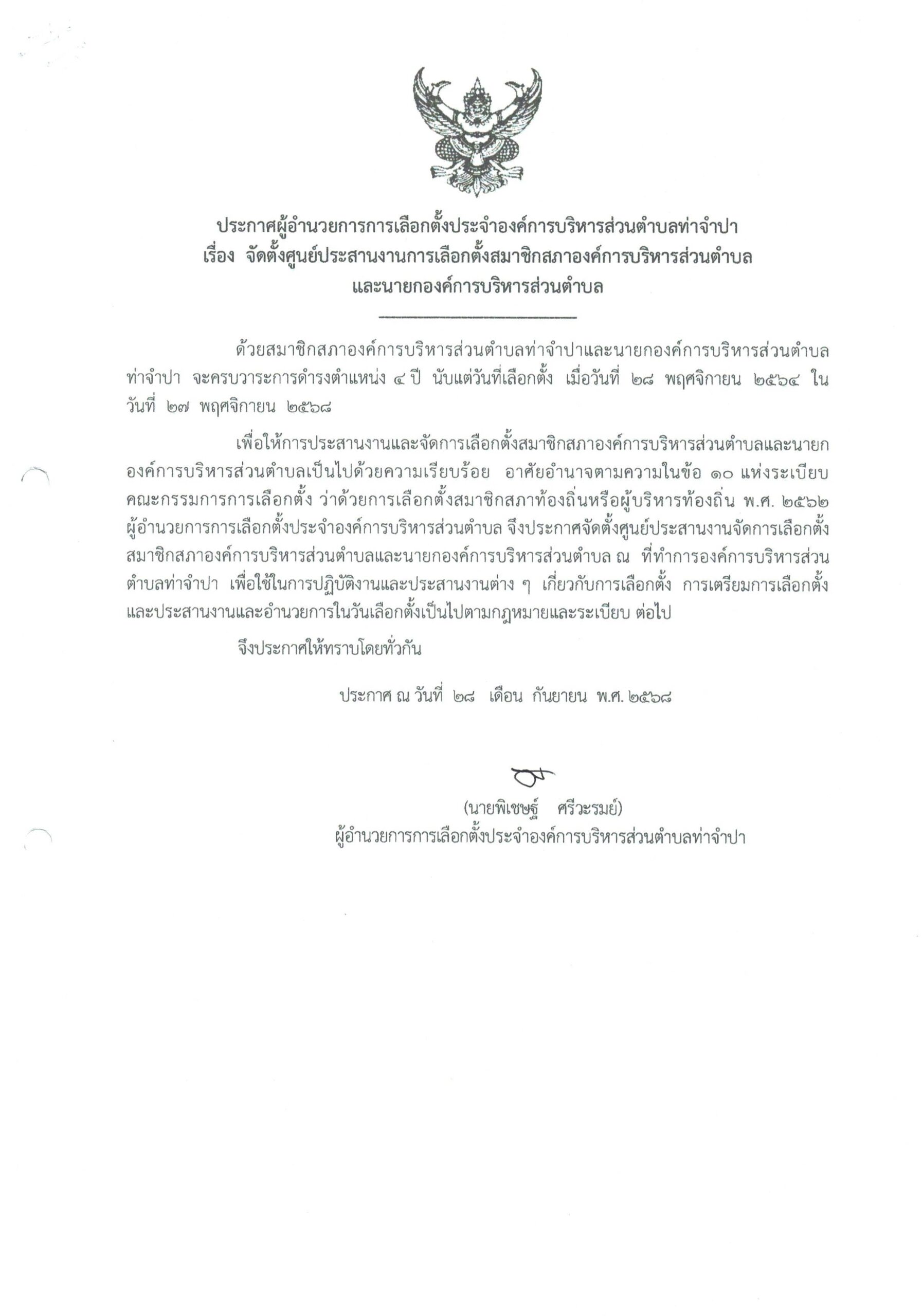 ประกาศผู้อำนวยการการเลือกตั้งประจำองค์การบริหารส่วนตำบลท่าจำปา เรื่อง จัดตั้งศูนย์ประสานงานการเลือกตั้งสมาชิกสภาองค์การบริหารส่วนตำบล และนายกองค์การบริหารส่วนตำบล 28 กันยายน 6822 ตุลาคม 25adminข่าวประชาสัมพันธ์ ประกาศผู้อำนวยการการเลือกตั้งประจำองค์การบริหารส่วนตำบลท่าจำปา เรื่อง จัดตั้งศูนย์ประสานงานการเลือกตั้งสมาชิกสภาองค์การบริหารส่วนตำบล และนายกองค์การบริหารส่วนตำบล อ่านแล้ว : 6 Facebook iconFacebookTwitter iconTwitterLINE iconLine
